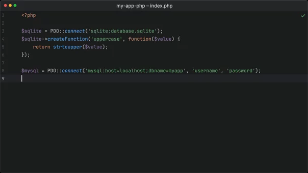 $connection = new PDO('sqlite:database.sqlite');This always returned a generic PDO object, regardless of which database driver you were using.