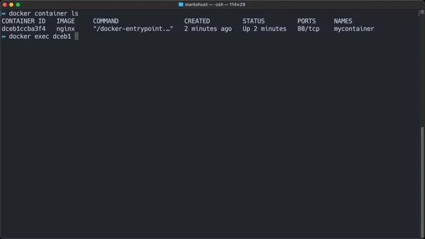 Learn how to execute commands inside a Docker container using the docker exec command.