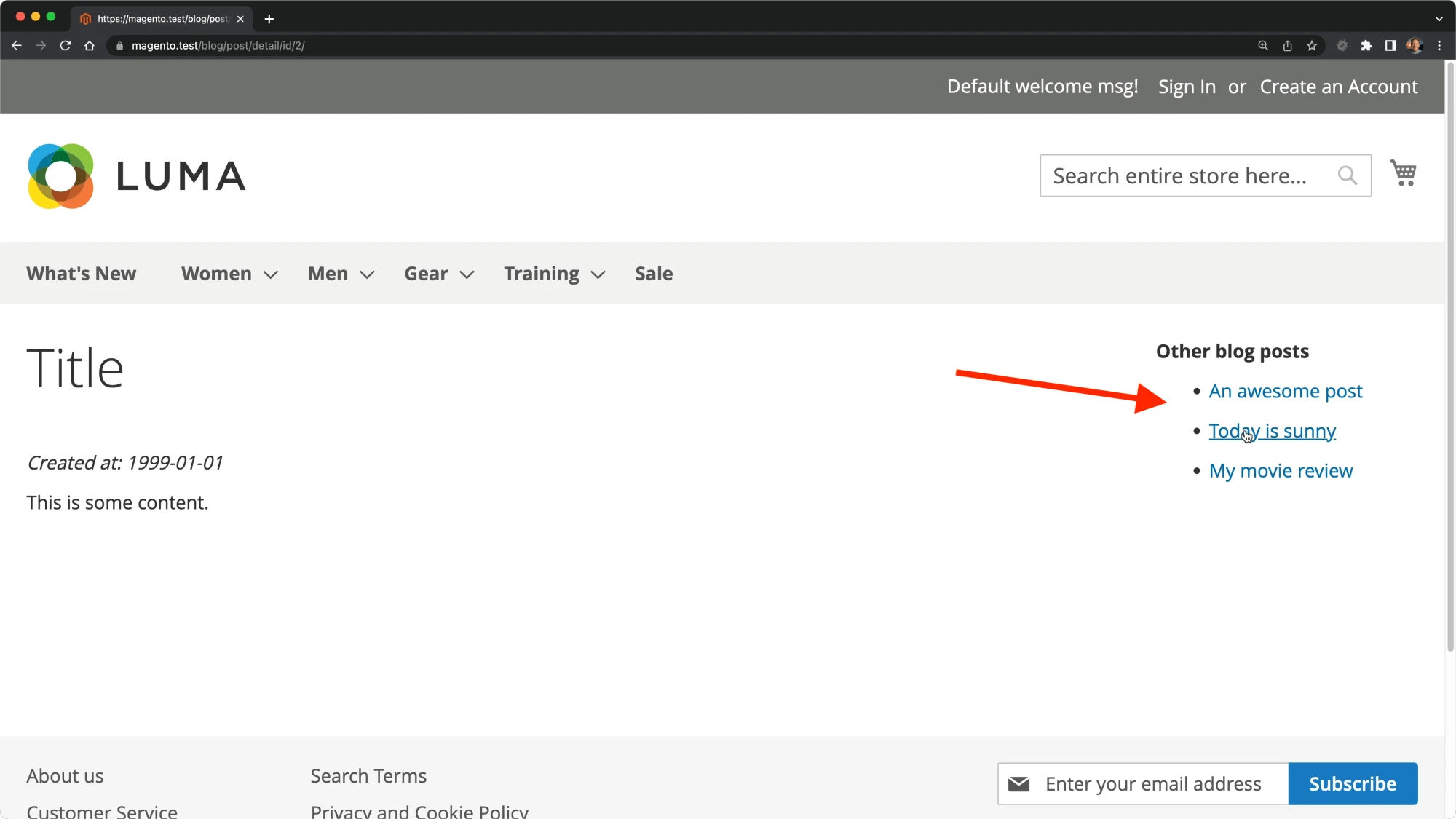Magento ViewModel exercise passing data to sidebar template on blog post detail page.